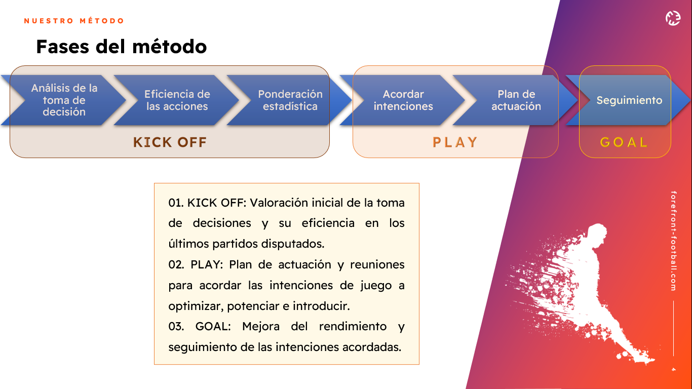 A partir del análisis de tus partidos, recibirás un exhaustivo informe personalizado, con observación objetiva -estadística- como subjetiva. Acorde con el informe, te proponemos un plan de acción en relación a las intenciones que expresas para potenciarlas, optimizarlas o introducir de nuevas; así como en qué momento del entreno practicarlas. Se realiza un seguimiento del plan de acción acordado.
